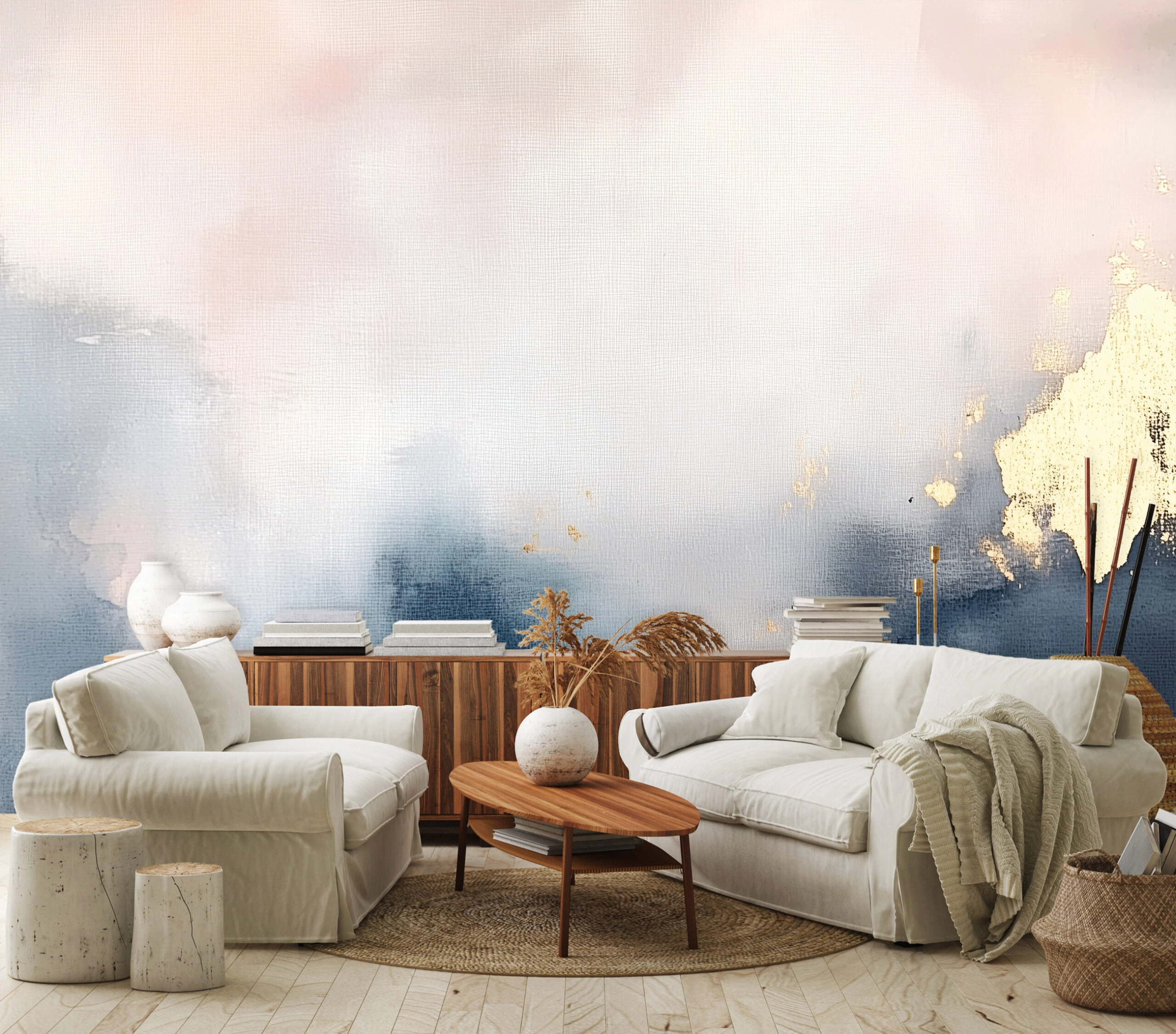 Absztrakt vászonkép hatású arany, szürke foltokkal díszített rózsaszínes fotótapéta