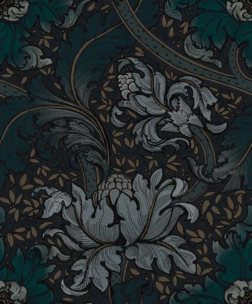 Angol dekor tapéta szecessziós akantuszvirág mintával sötétzöld és szürkéskék színben