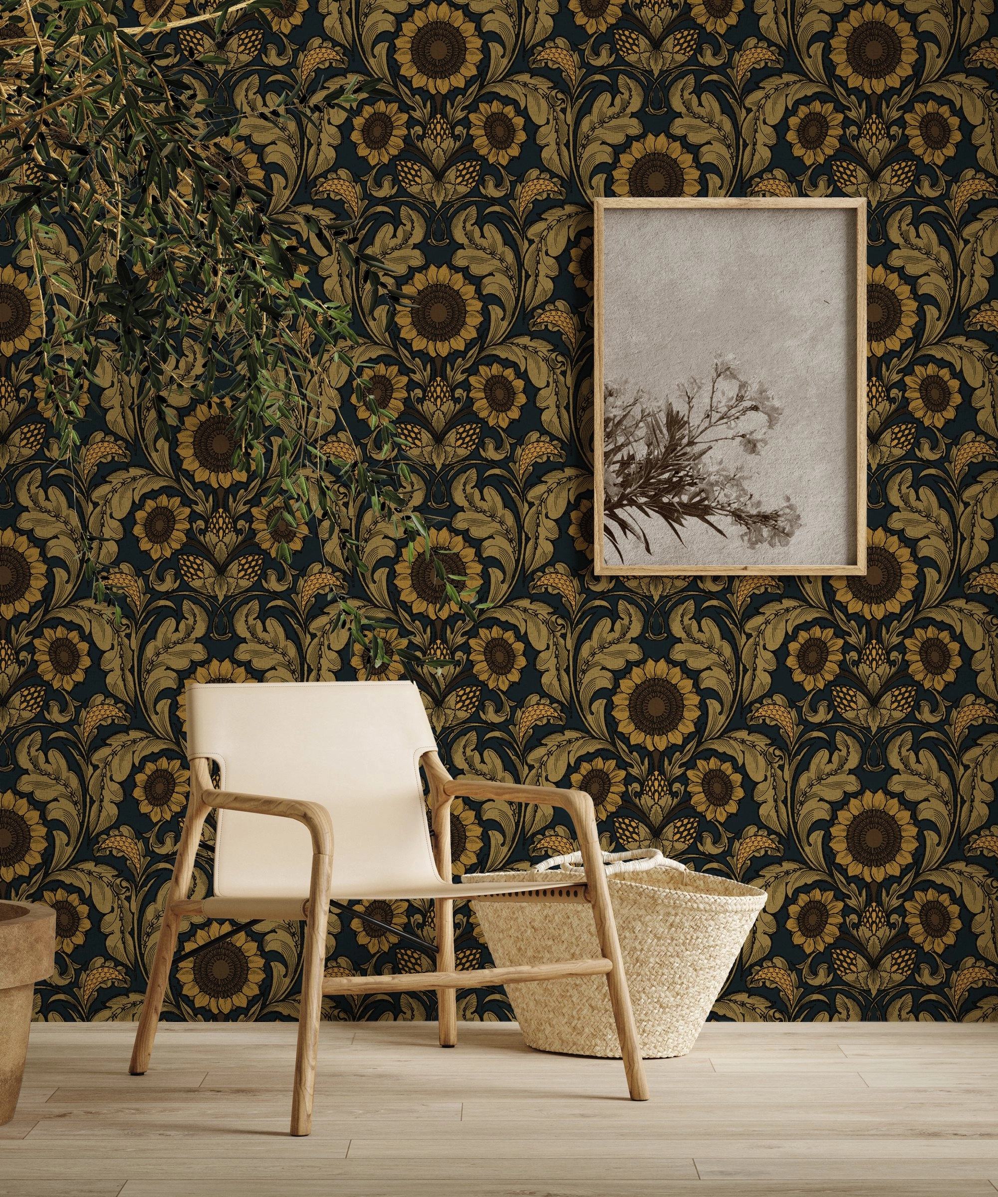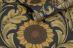 Angol dekor tapéta szecessziós napraforgó mintával mustársárga és matrózkék színben