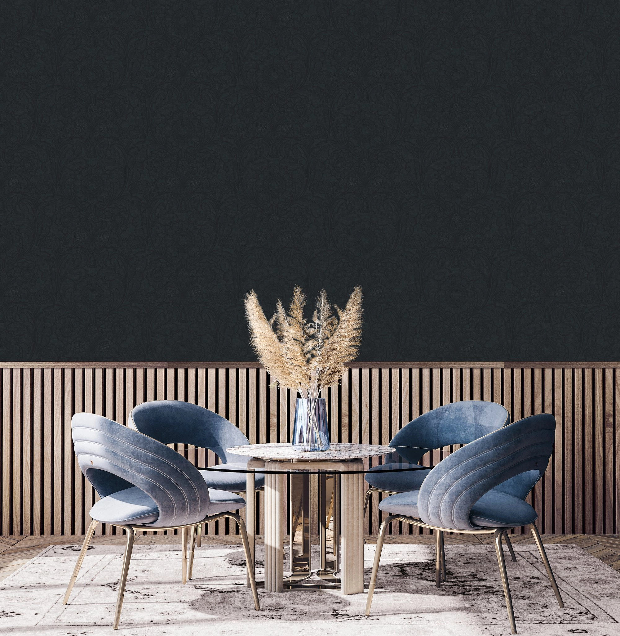 Angol dekor tapéta szecessziós napraforgó mintával szénszürke és fekete színben