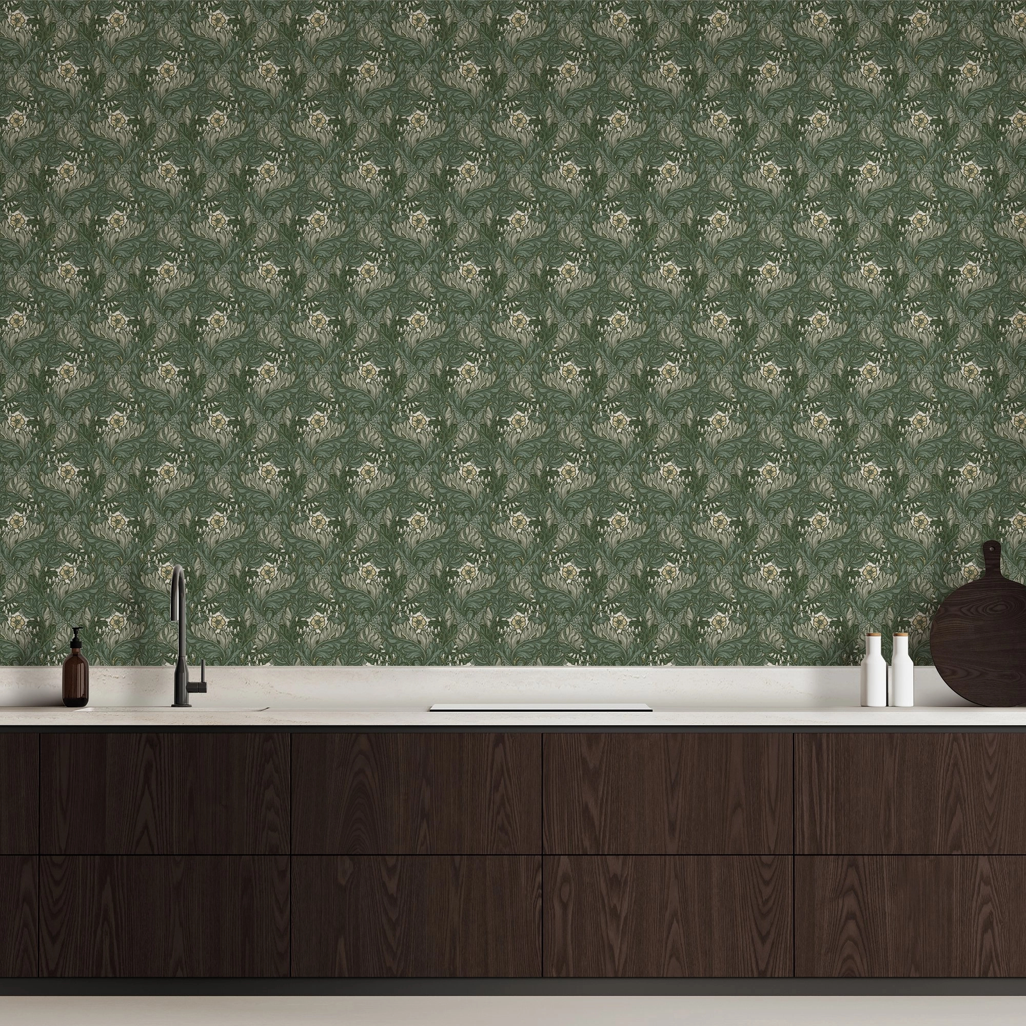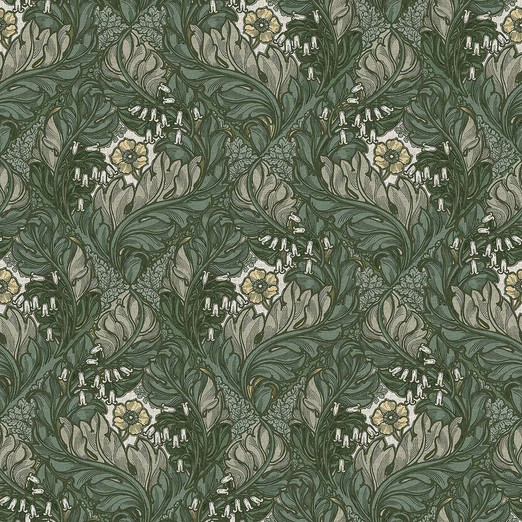 Angol dekor tapéta szecessziós virág mintával fenyőzöld színben