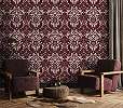 Angol flokkolt dekor tapéta country nagy levél mintával beige és bordó színben