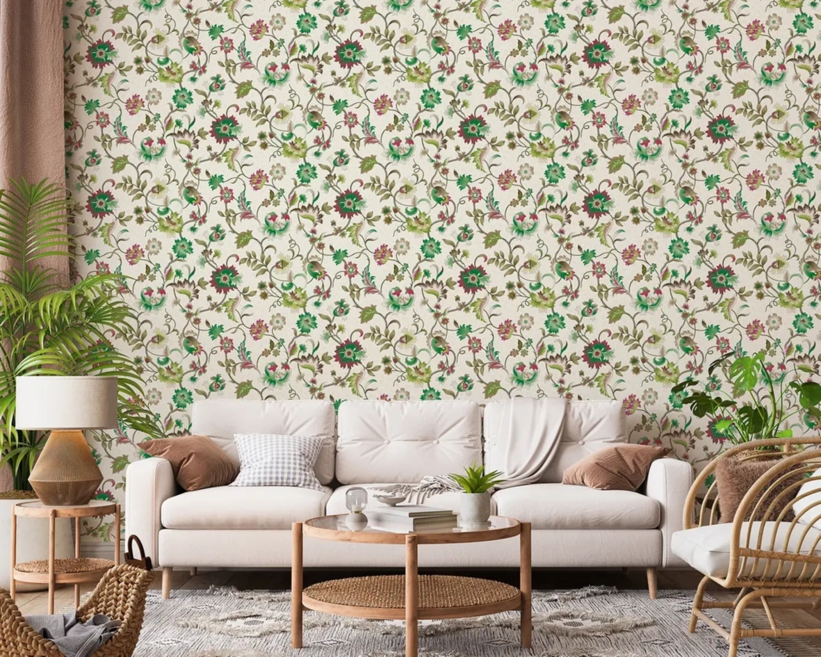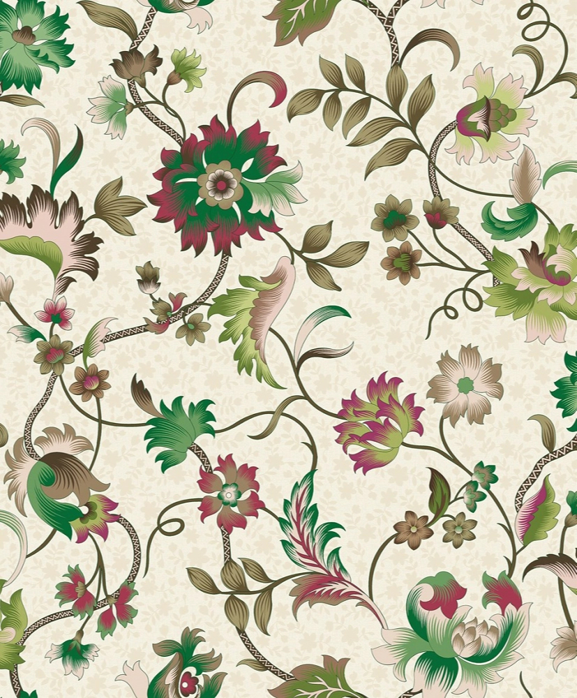 Angol stílusú dekor tapéta virágos inda mintával bordó és zöld színben