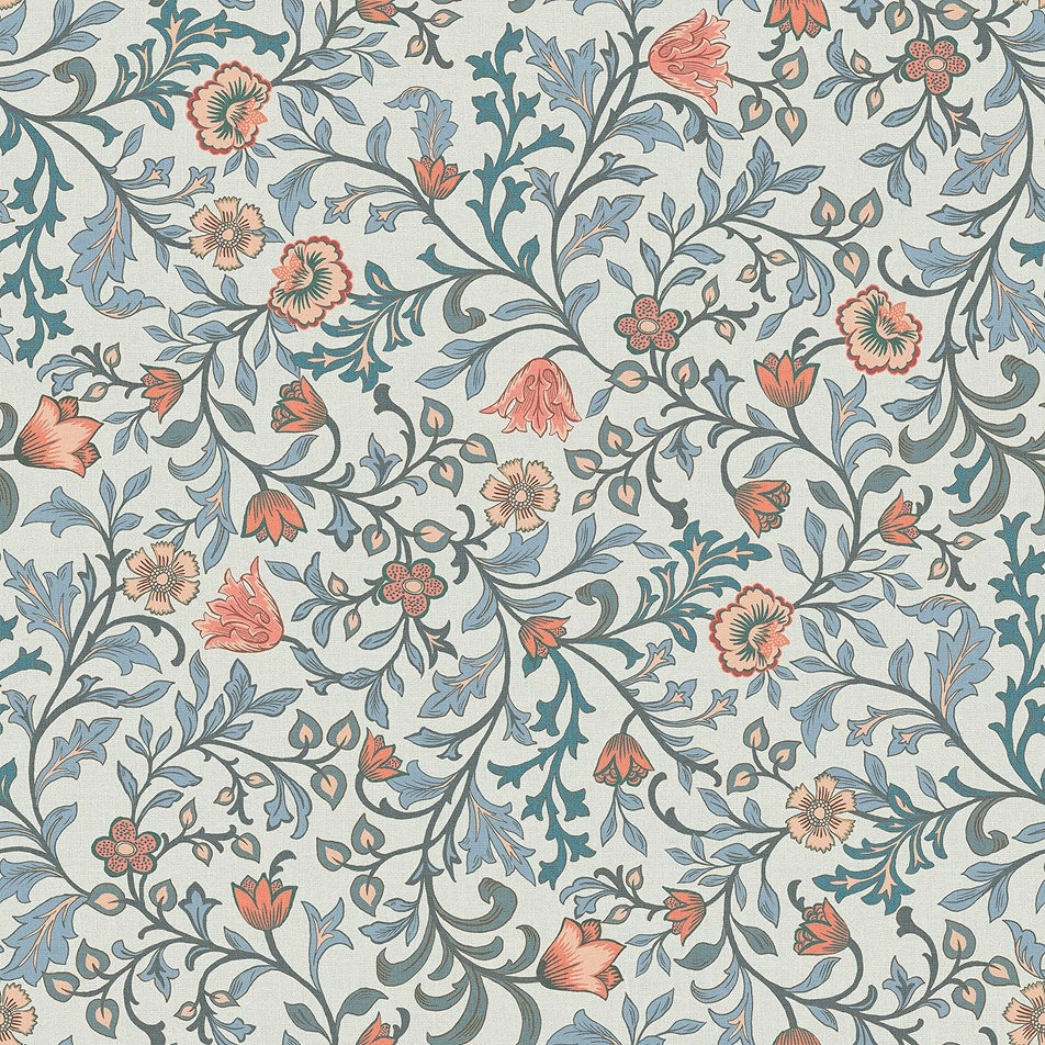 Angol stílusú dekor tapéta virágos mintával korall és kék színben