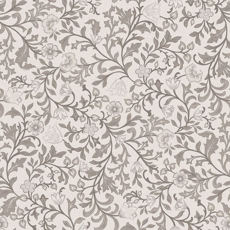Angol stílusú dekor tapéta virágos mintával szürke színben