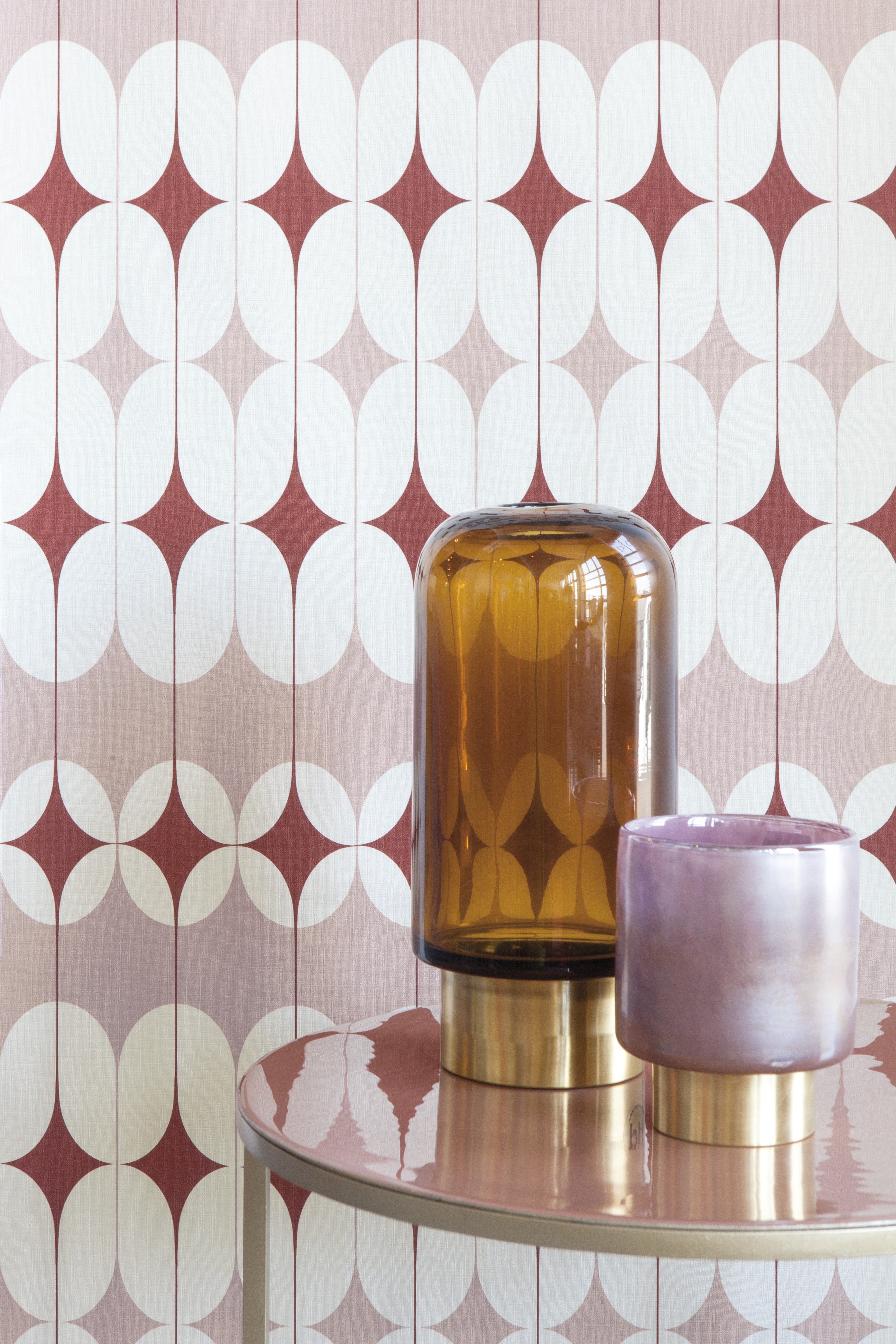Artdeco stílusú tapéta piros, rózsaszín geometria mintákkal
