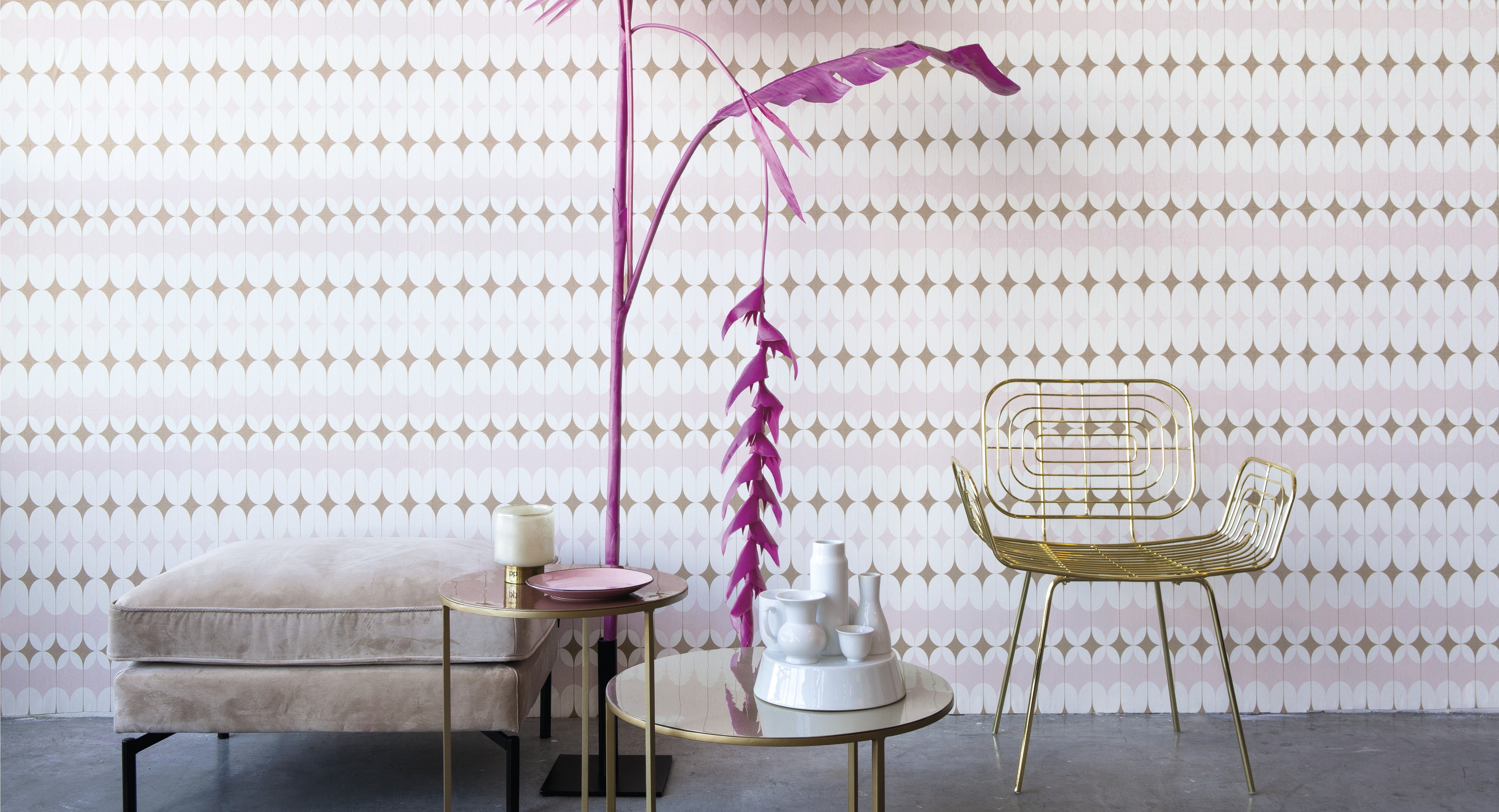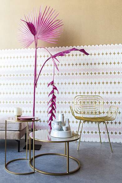 Artdeco tapéta, arany, rózsaszín mintákkal