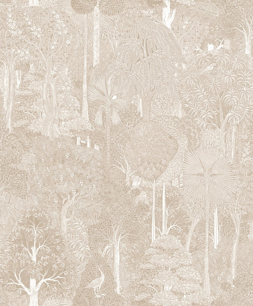Bézs dzsungel mintás design tapéta részletgazdag mintával