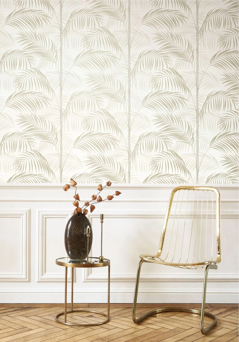 Bézs pálmalevél mintás francia art deco tapéta