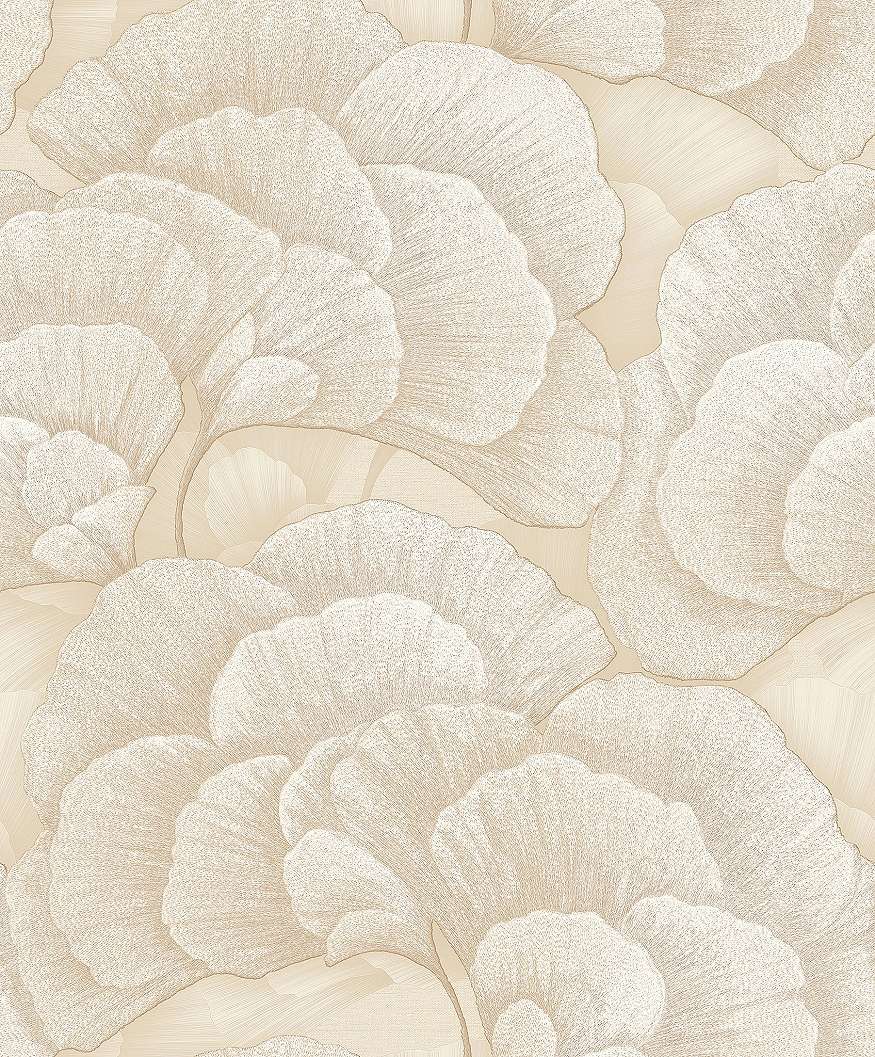 Bézs textil szőtt gingko levél mintás dekor tapéta