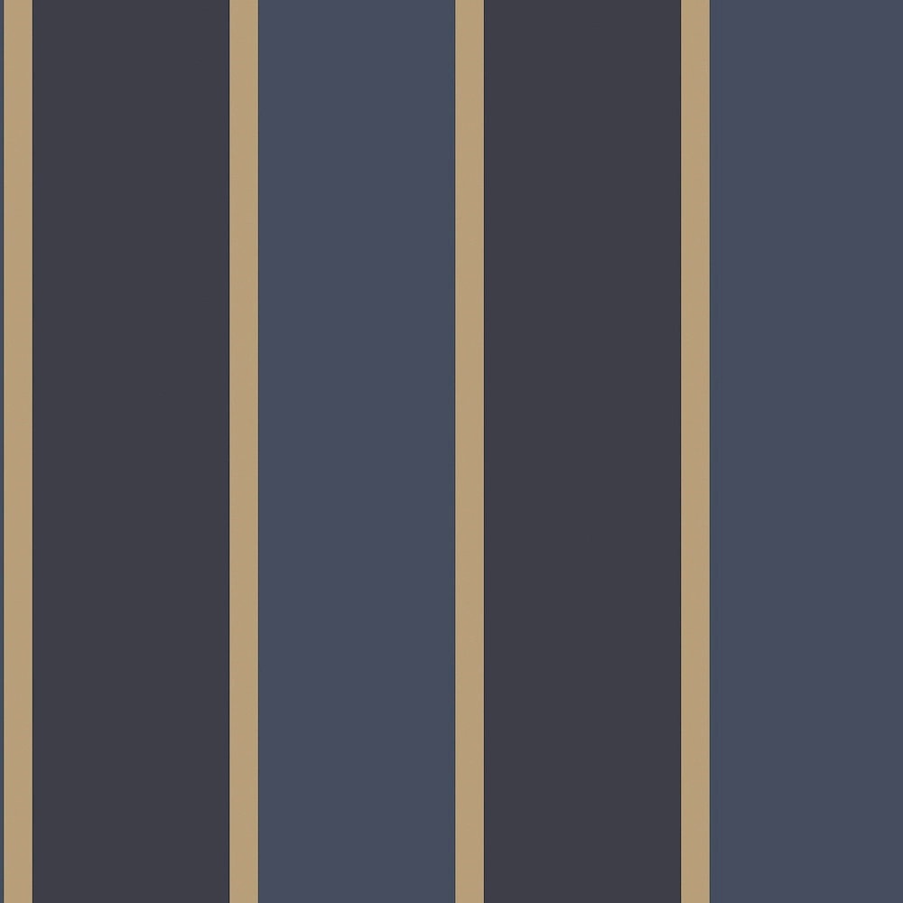 Csíkos vinyl tapéta kék arany fekete csíkokkal