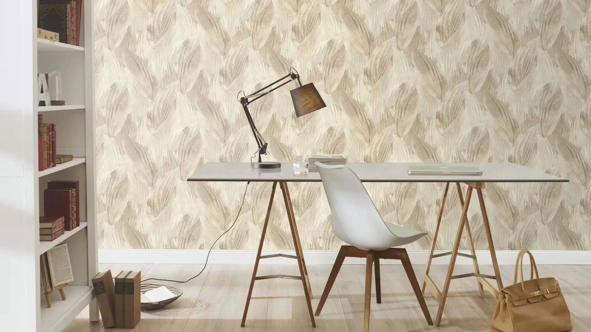 Dekor tapéta beige színű nagy levél mintával vinyl mosható