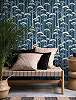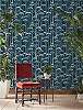 Dekor tapéta egybefüggő erdő mintával indigókék színben, vintage és bohém stílushoz