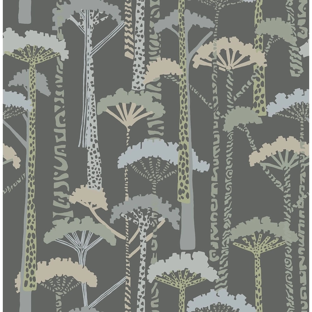Dekor tapéta egybefüggő erdő mintával szürkészöld színben