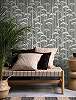 Dekor tapéta egybefüggő erdő mintával szürkészöld színben, vintage és bohém stílushoz