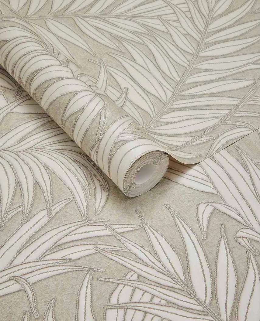 Dekor tapéta fényes világosszürke, ezüst színű kókusz pálmafa leveles mintával klasszikus, romantikus stílusban
