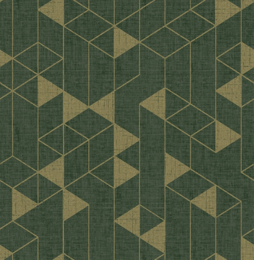 Dekor tapéta geometrikus absztrakt háromszög mintával fényes arany és fenyőzöld színben