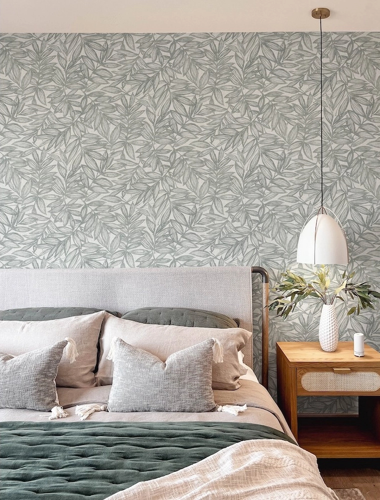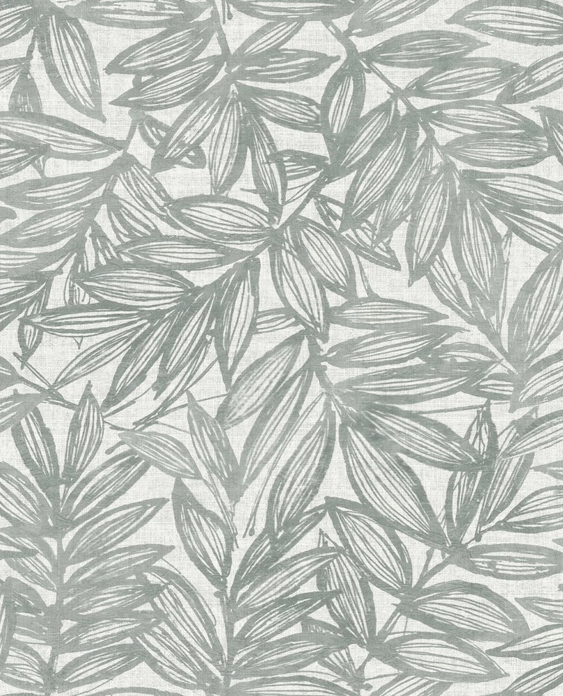 Dekor tapéta levél mintával fehér és szürke színben, vintage stílushoz