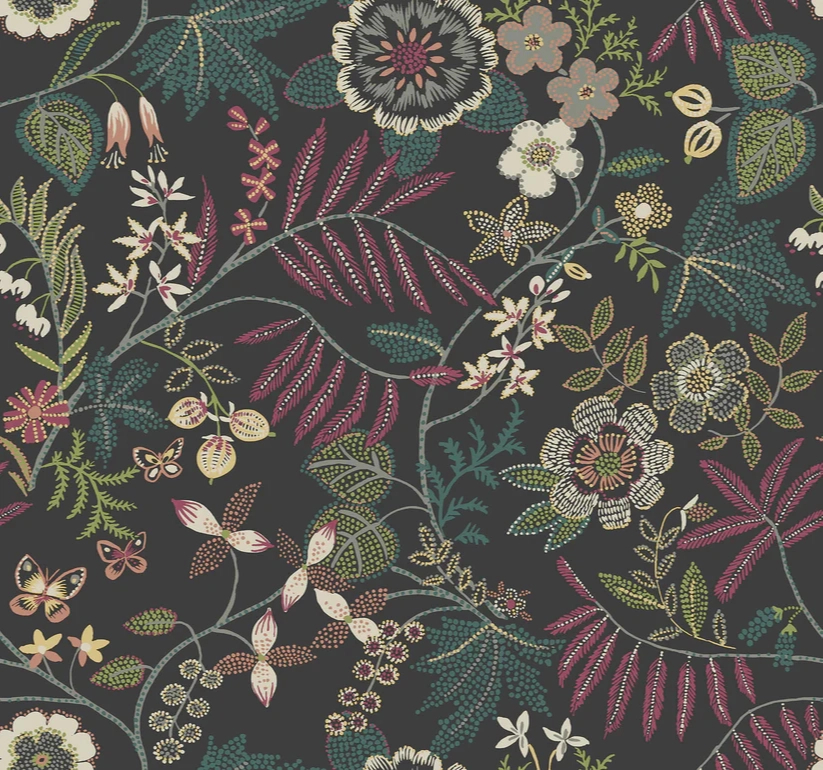 Dekor tapéta rajzolt virág mintával bordó és fekete színben