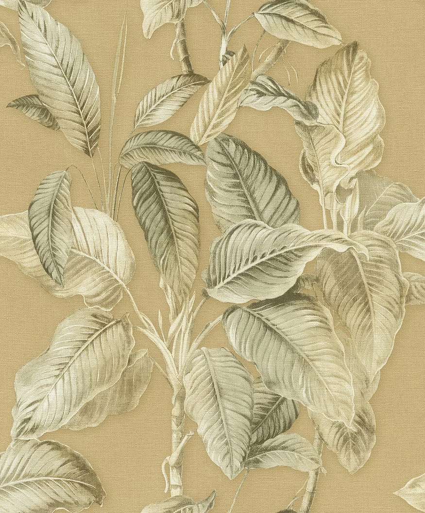 Dekor tapéta sárga és zöld színű levél mintával vinyl mosható