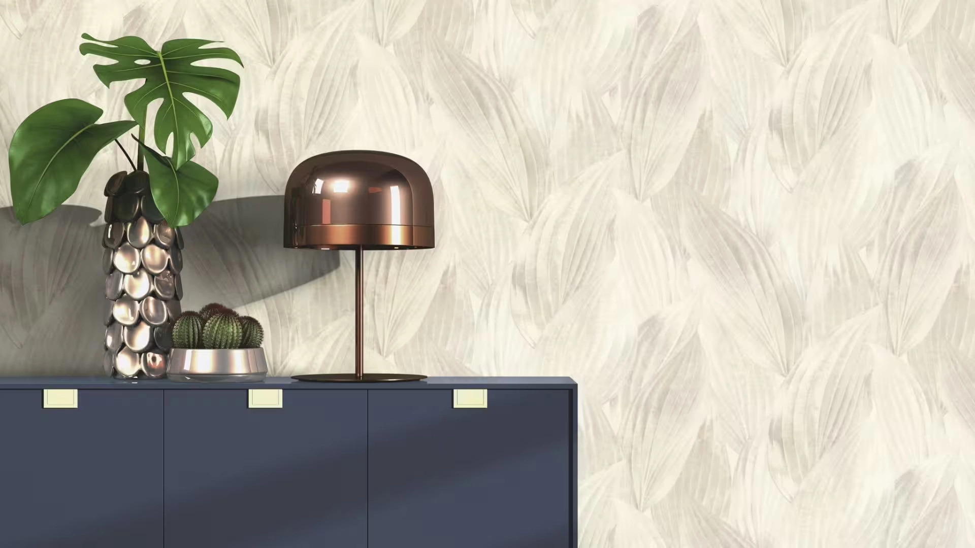 Dekor tapéta szürke színű nagy levél mintával vinyl mosható