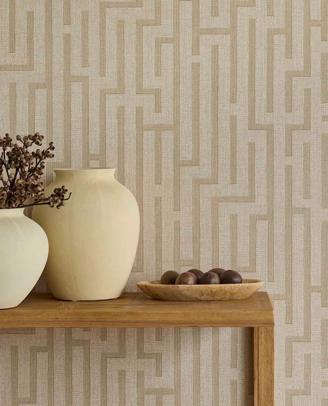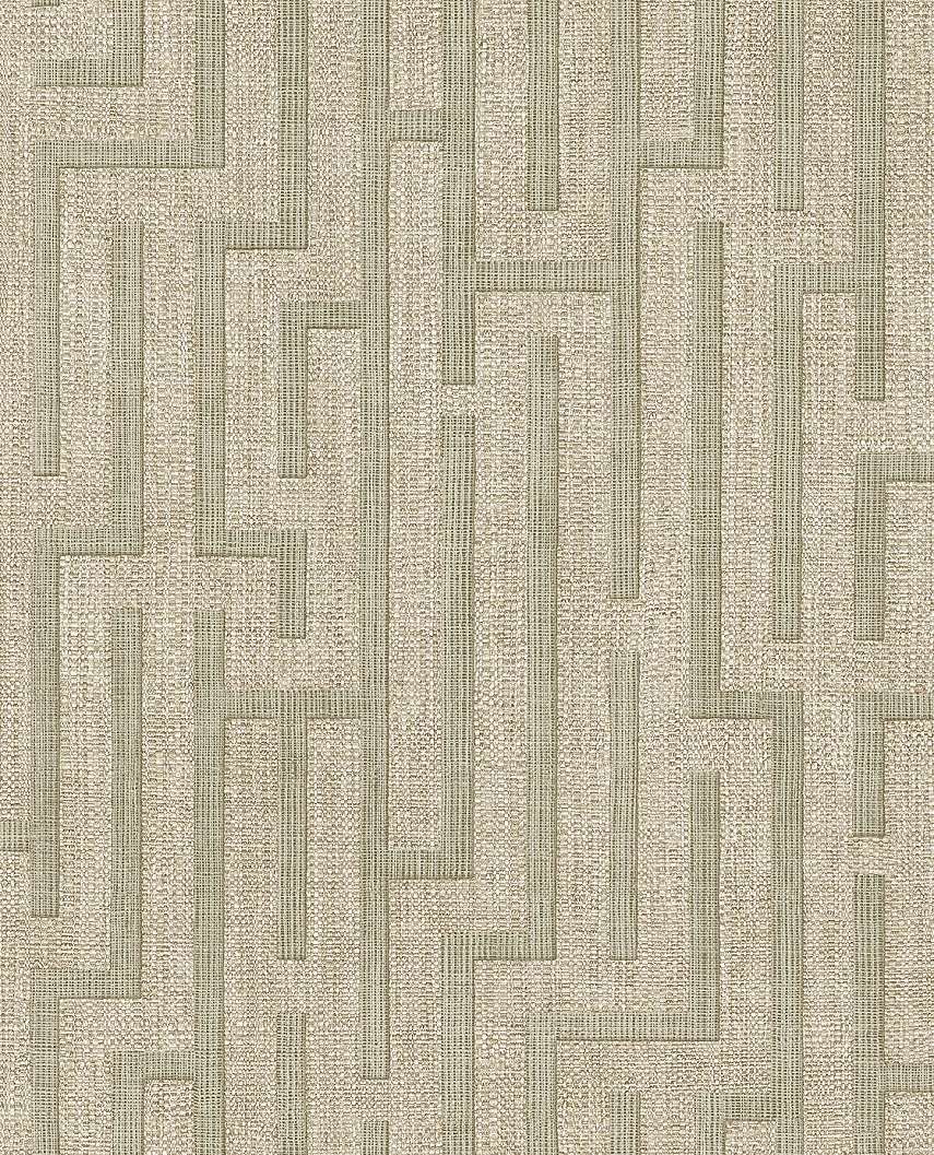 Dekor vinyl tapéta halvány zöld és homokbarna színű geometriai minta szőtt hatással Romantikus stílusban