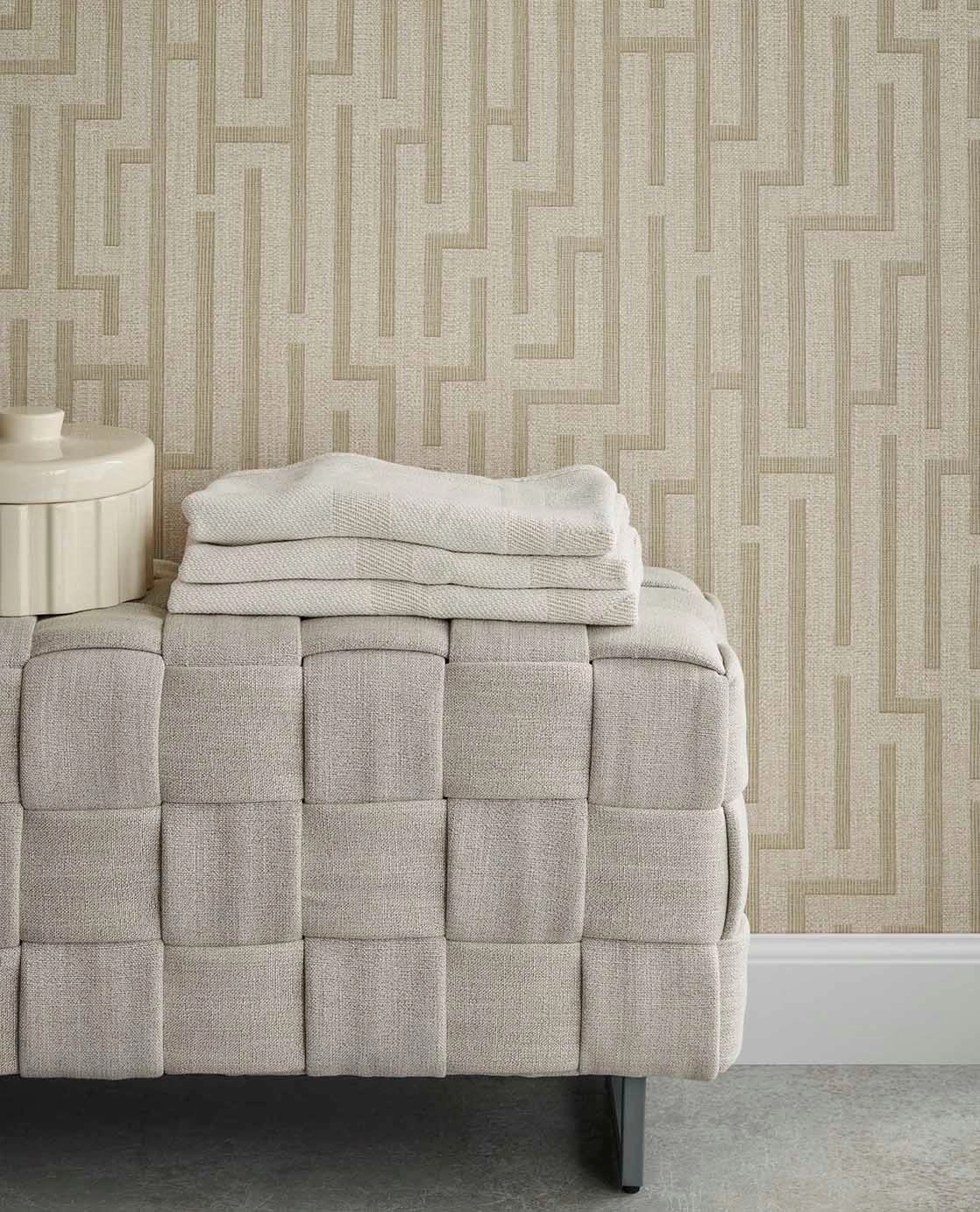 Dekor vinyl tapéta homokbarna és beige színű geometriai minta szőtt hatással Romantikus stílusban