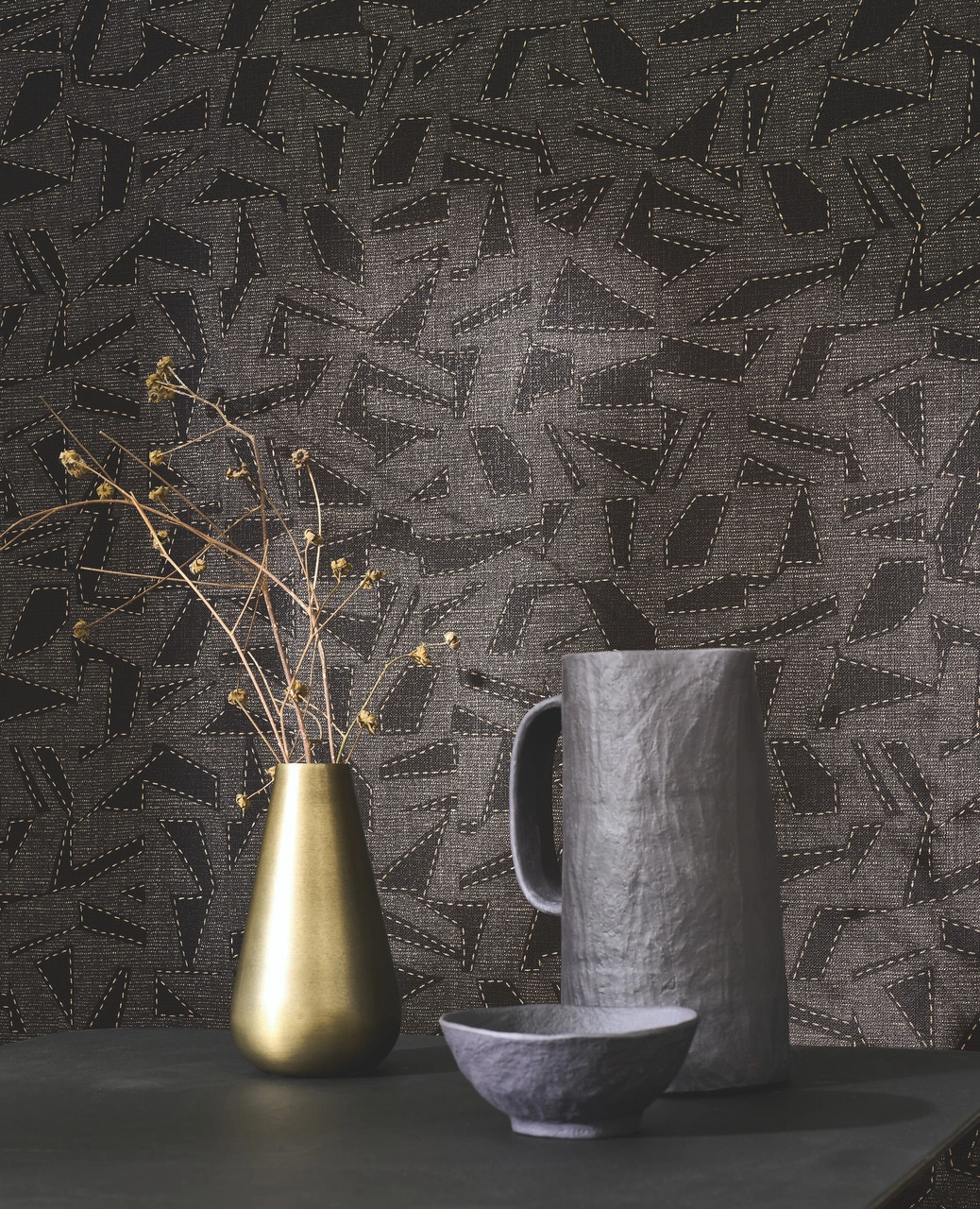 Design tapéta absztrakt apró geometrikus mintával szénfekete színben, elegáns és minimál stílushoz