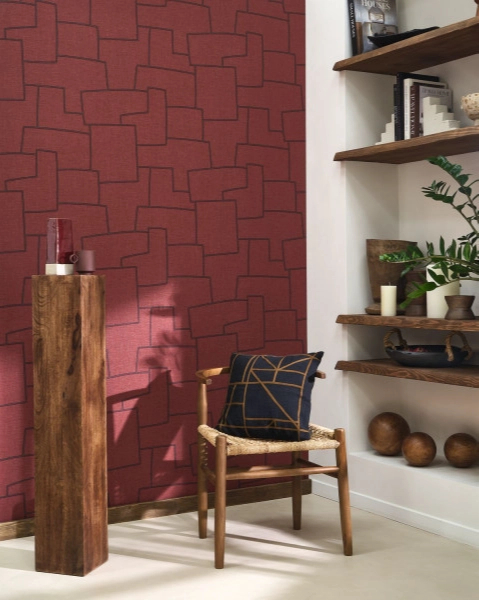 Design tapéta absztrakt geometriai mintával bordó színben, elegáns és minimál stílushoz