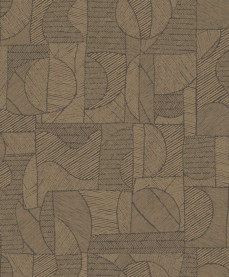 Design tapéta absztrakt geometrikus textil mintával barna és arany színben