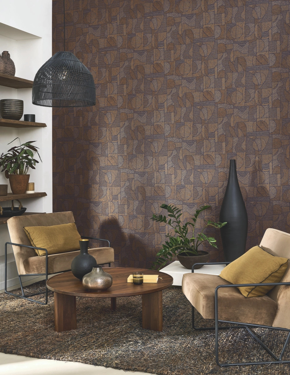 Design tapéta absztrakt geometrikus textil mintával fekete és bronz színben, elegáns és minimál stílushoz