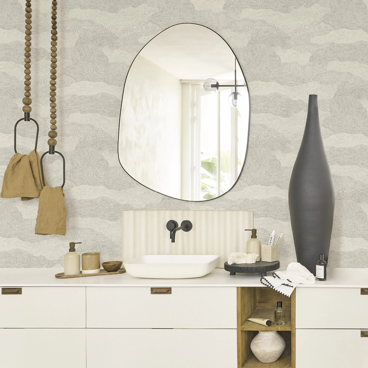 Design tapéta absztrakt hullám mintával beige és dohánybarna színben, elegáns és minimál stílushoz