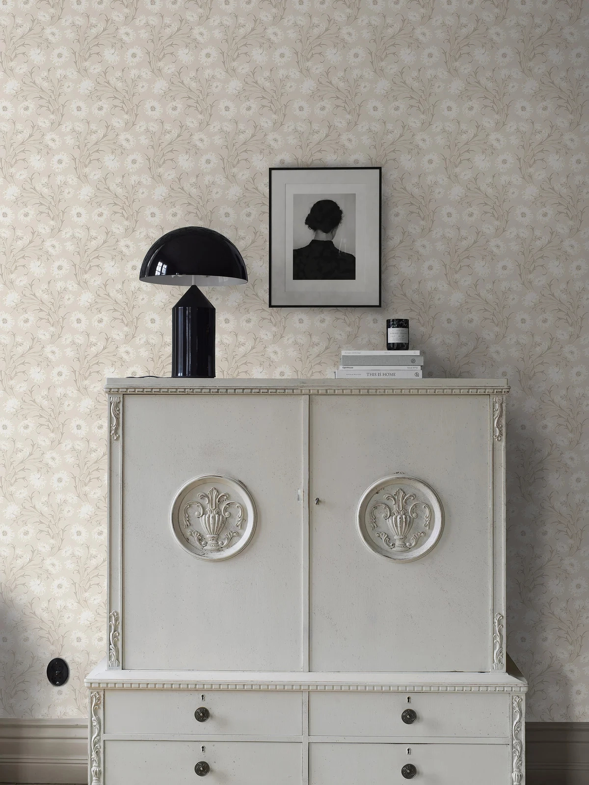 Elegáns mosható dekor tapéta pipacs mintával krém színben, skandináv és természeti stílushoz