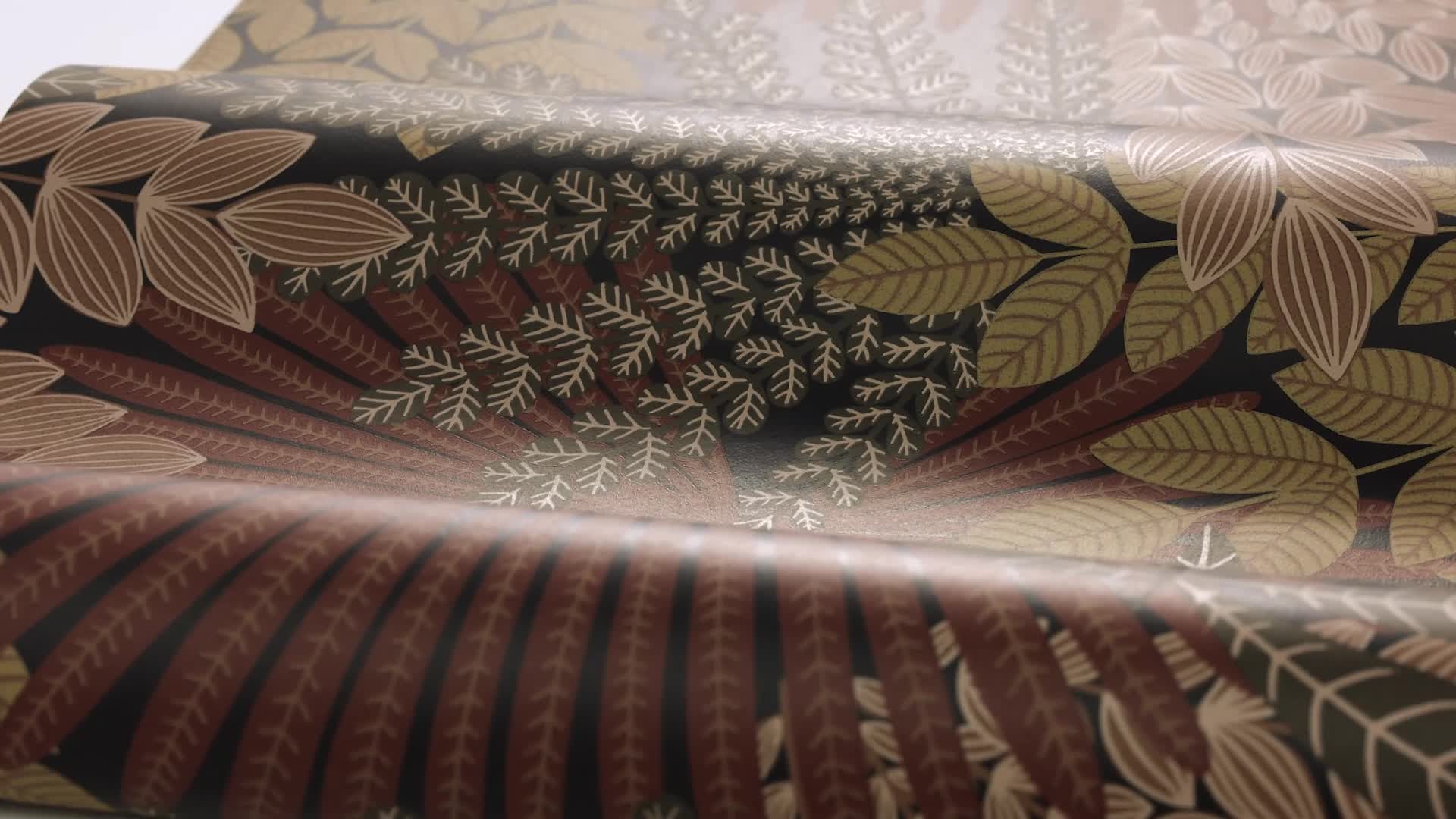 Elegáns mosható dekor tapéta bársonyos levél mintával barna színben, skandináv és természeti stílushoz