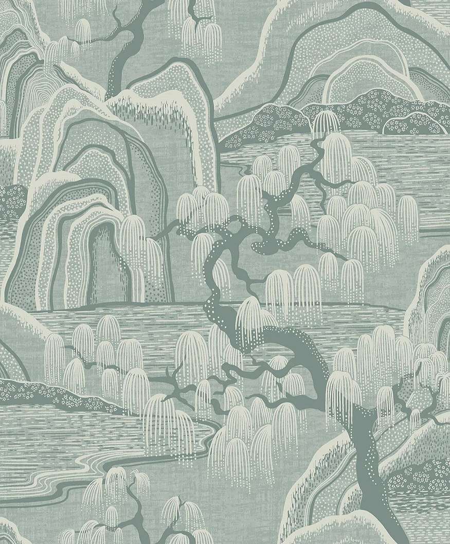 Elegáns mosható dekor tapéta szomorúfűz mintával ködszürke színben, skandináv és természeti stílushoz