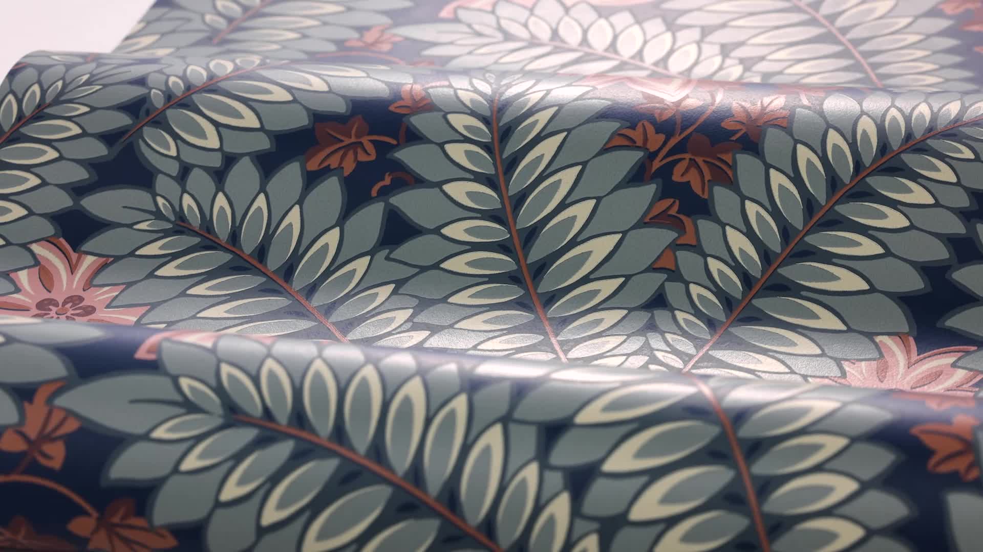 Elegáns mosható dekor tapéta virágos levél mintával kék és beige színben, romantikus és természeti stílushoz