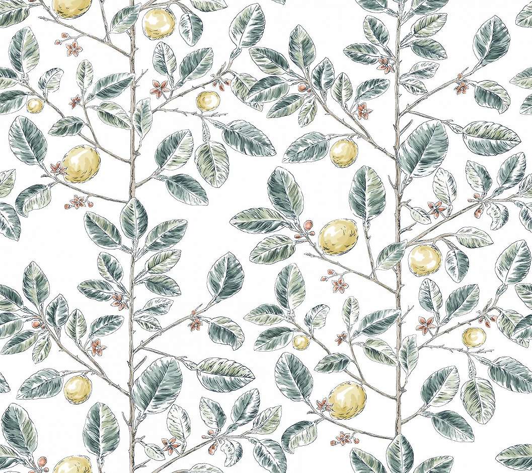 Elegáns sötét zöld levelű citromfa mintás dekor tapéta