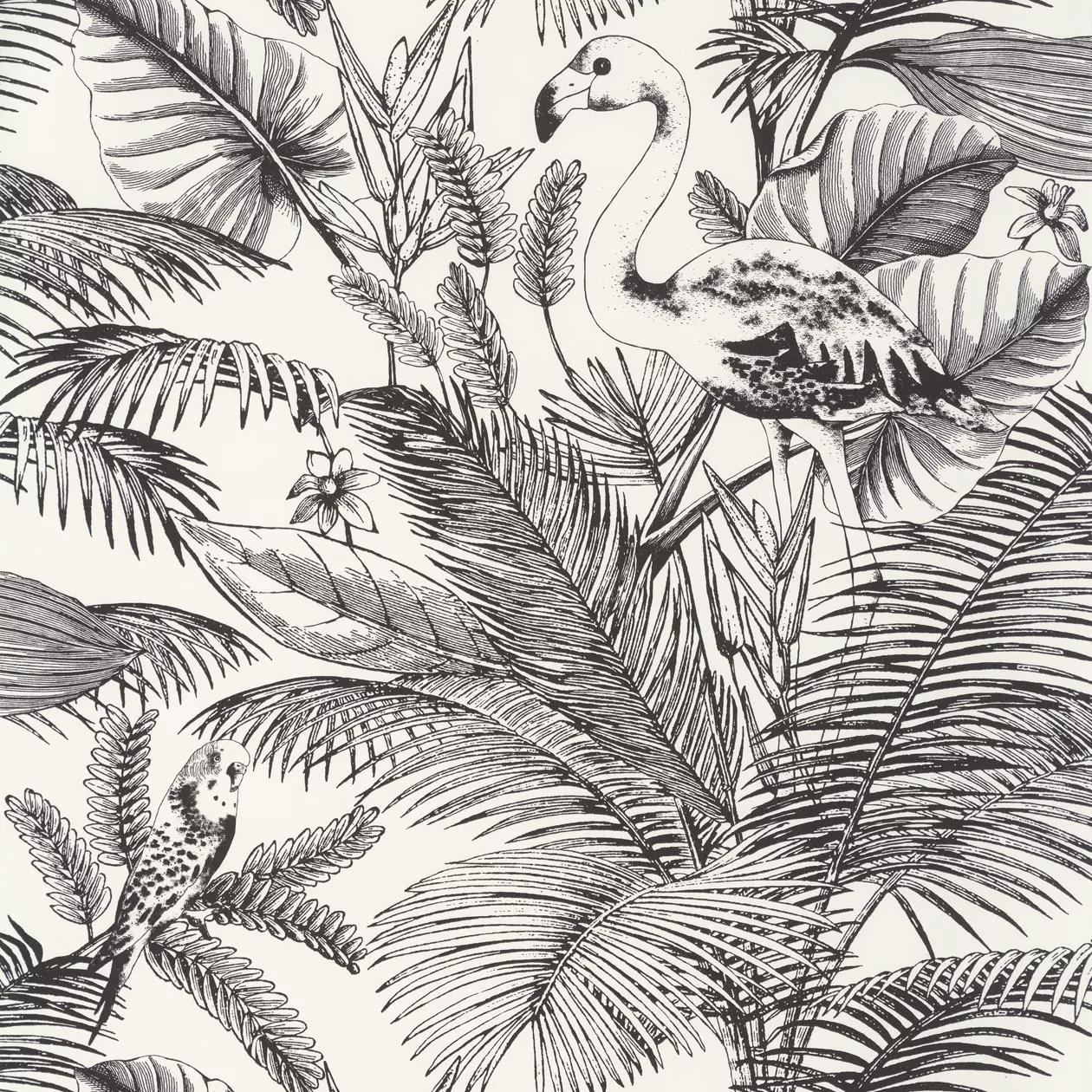 Elegáns trópusi mintás tapéta fekete fehér színvilágban