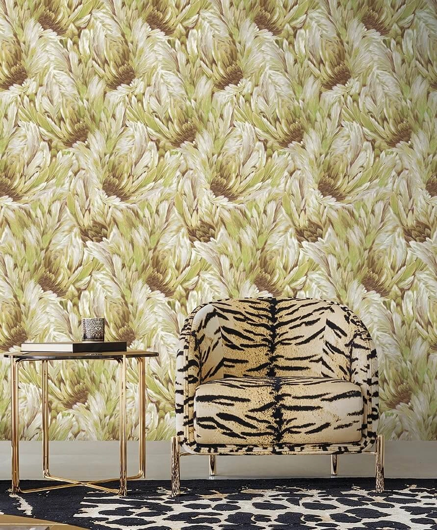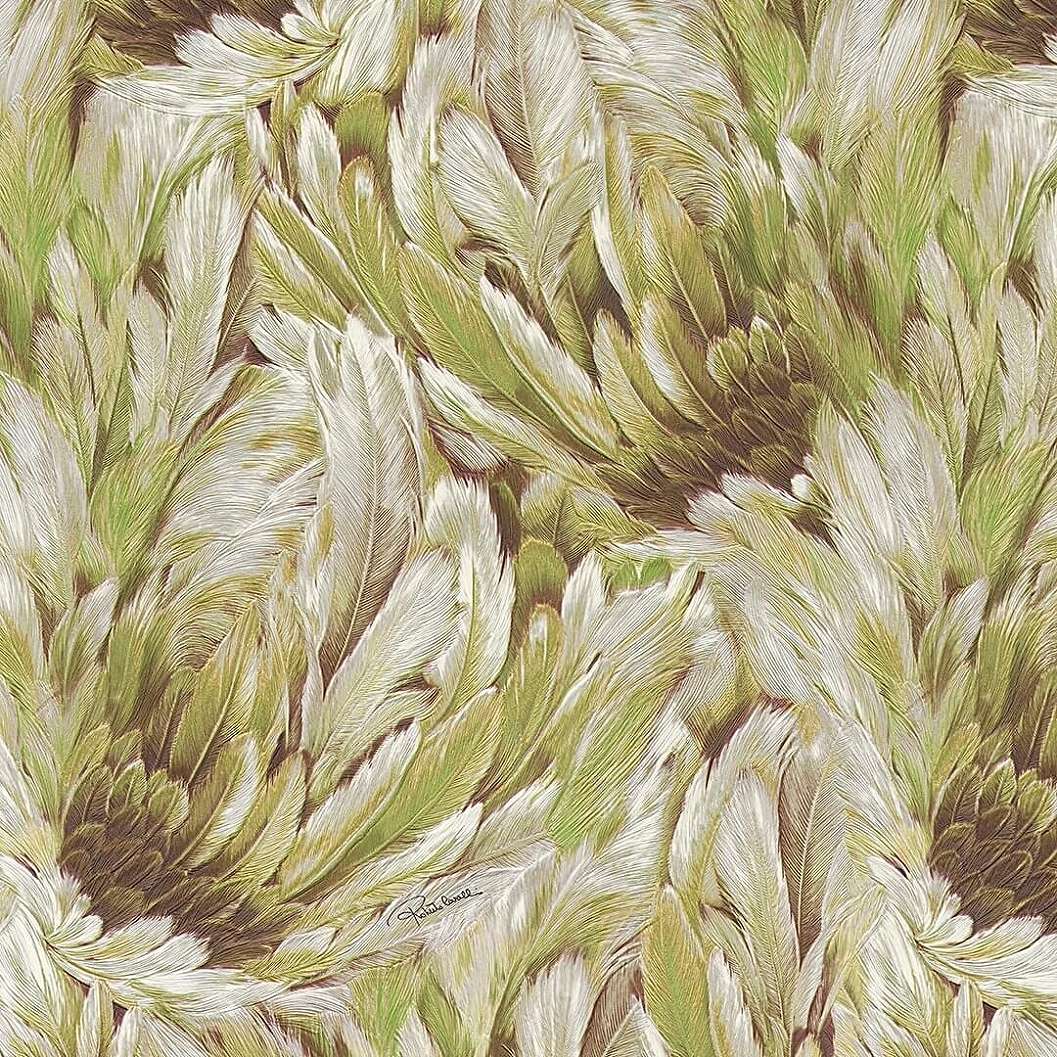 Elegáns zöld toll mintás dupla széles Roberto Cavalli design tapéta