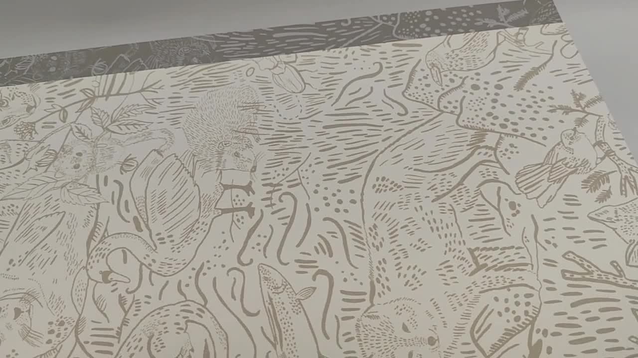 Erdei állatos skandi dekor tapéta natúr színben