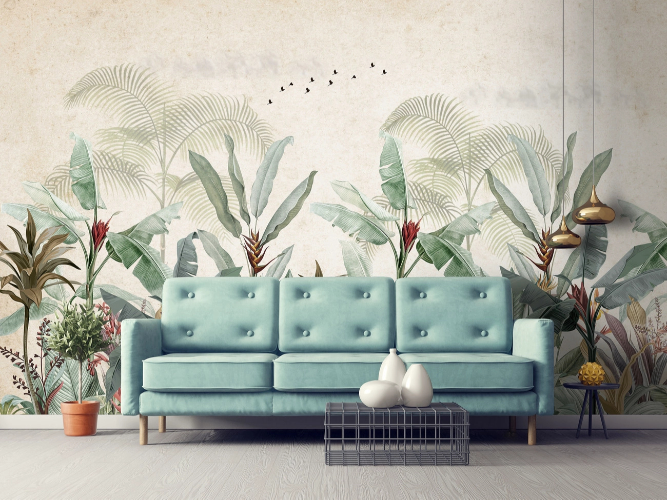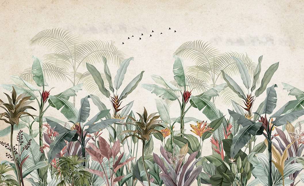 Fotótapéta beige háttér színű stilizált pálmafa erdő 368x254 vlies
