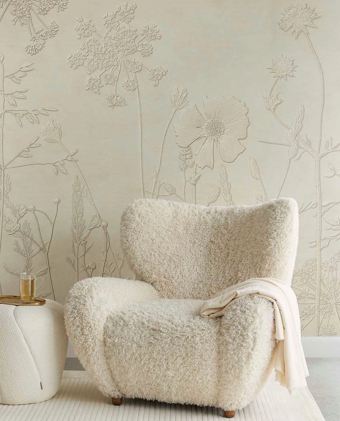 Fotótapéta bodzavirág és pipacsos mező mintával beige és világos homokbarna színben