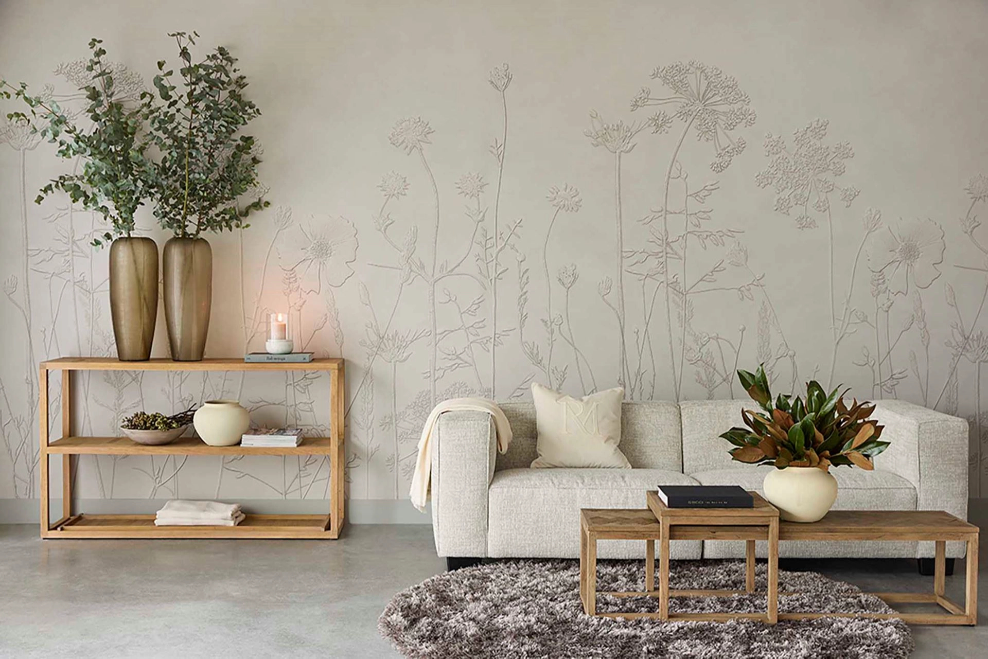 Fotótapéta fehér és krém színű pipacs és bodzavirág mintás dombornyomott hatással