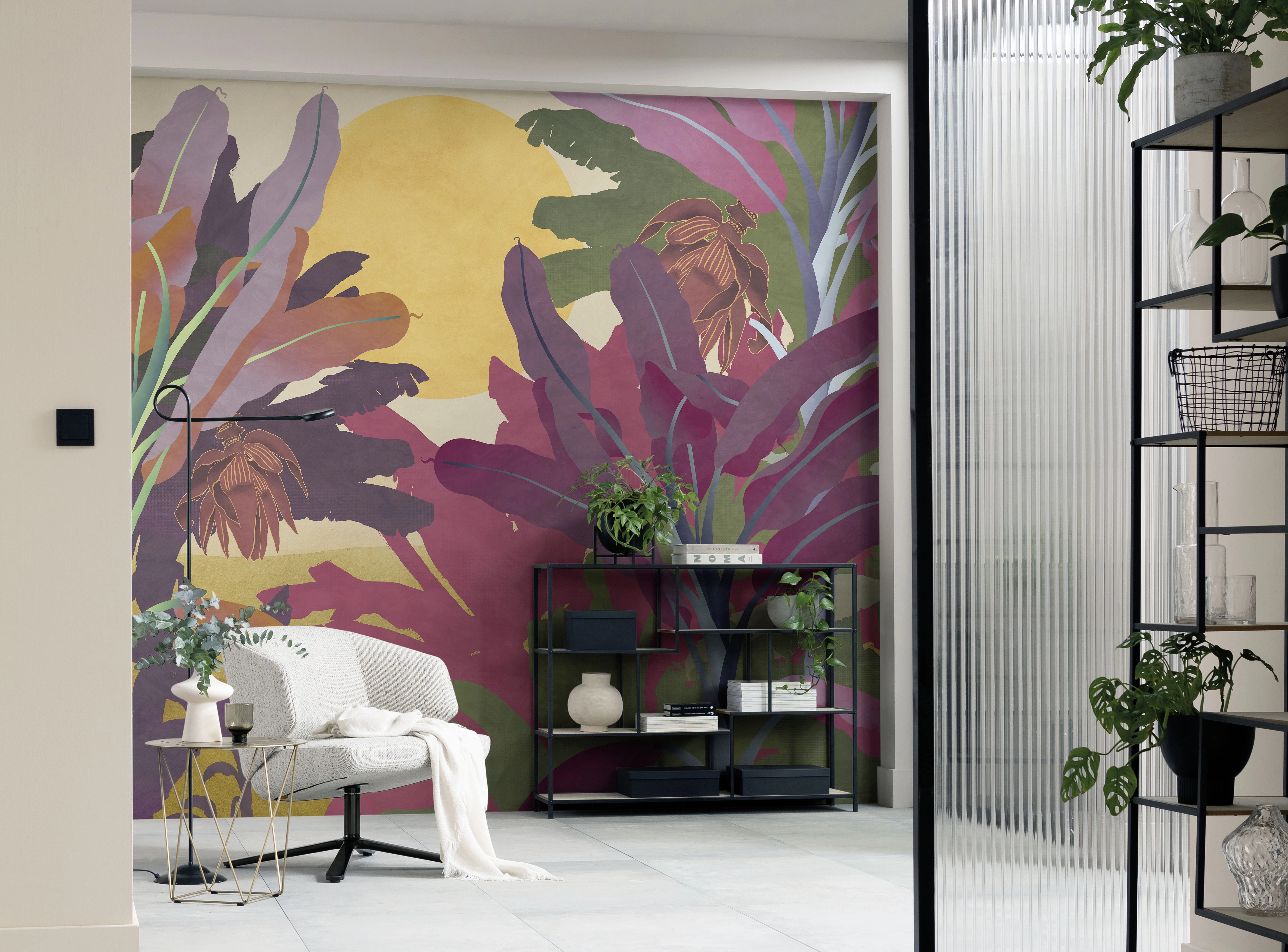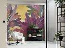 Fotótapéta színes vidám trópusi pálmalevél mintával