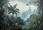 Fotótapéta vászonkép hatásó festett trópusi esőerdő hegyekkel 368x254 vlies