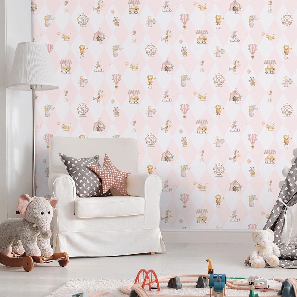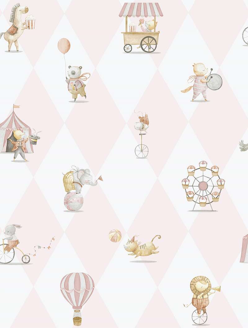 Gyerek dekor tapéta rózsaszín színben cirkuszi állat mintával