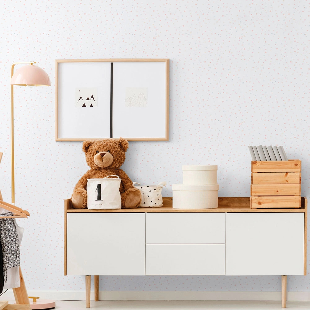 Gyerek dekor tapéta rózsaszín színben fröcskölt pöttyös mintával