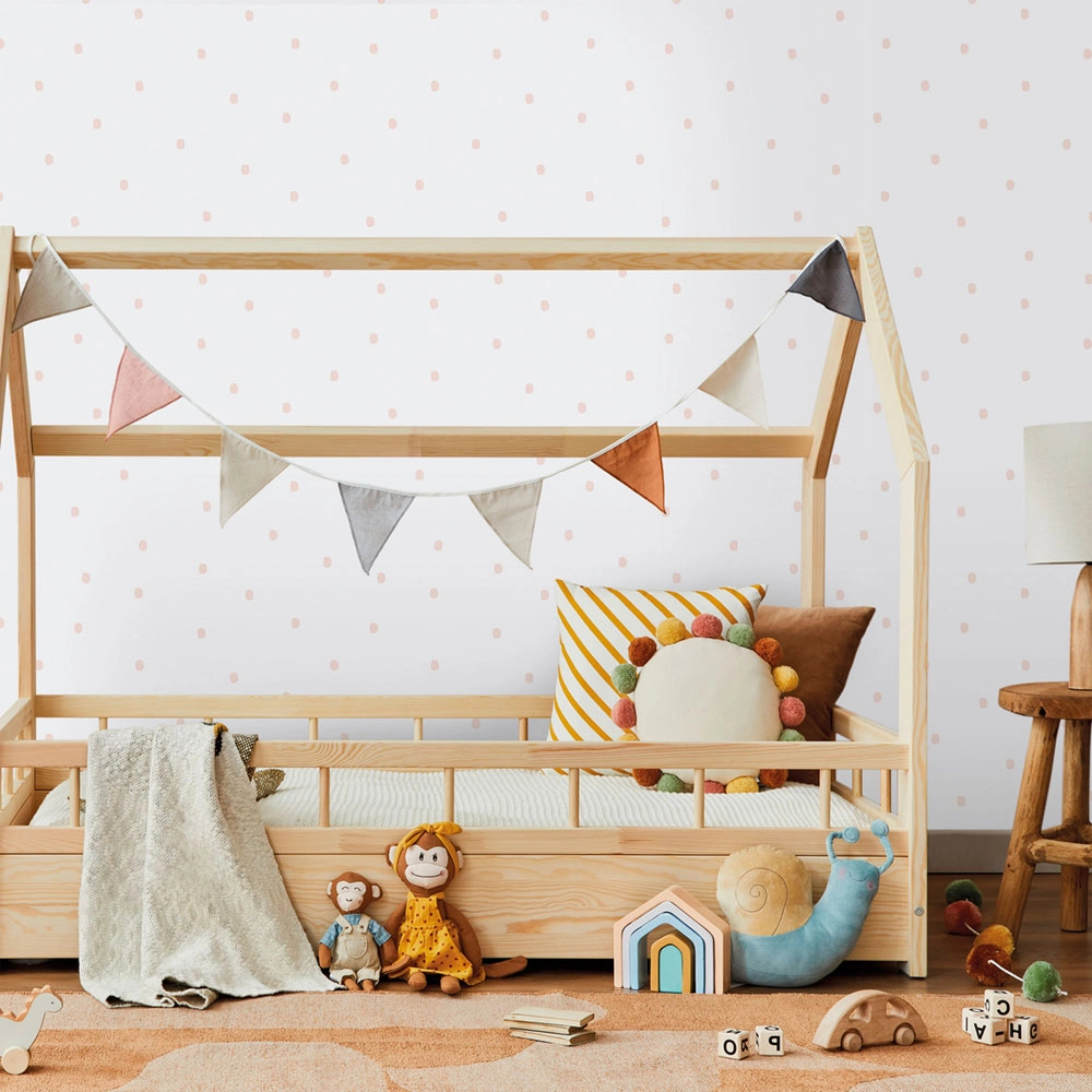 Gyerek dekor tapéta rózsaszín színben nagy pöttyös mintával