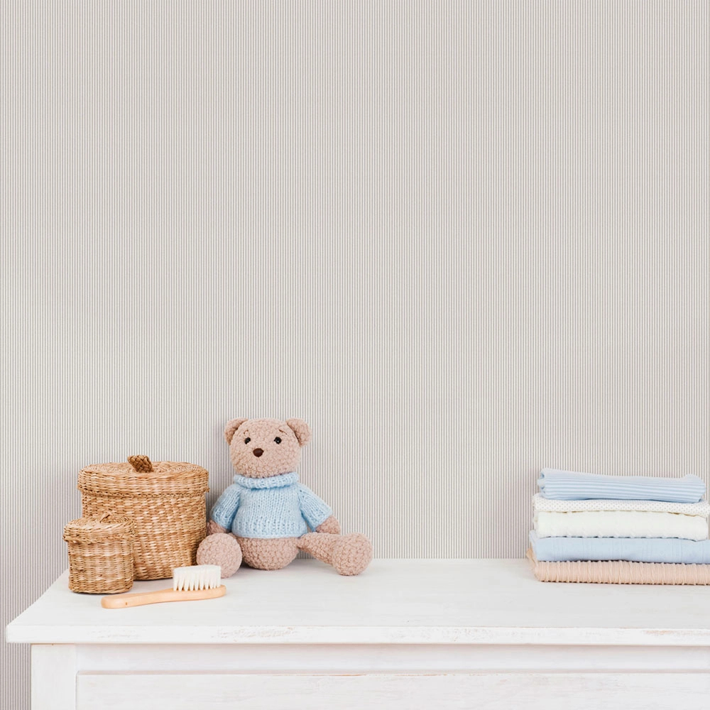 Gyerek dekor tapéta szürke színben keskeny csíkos mintával