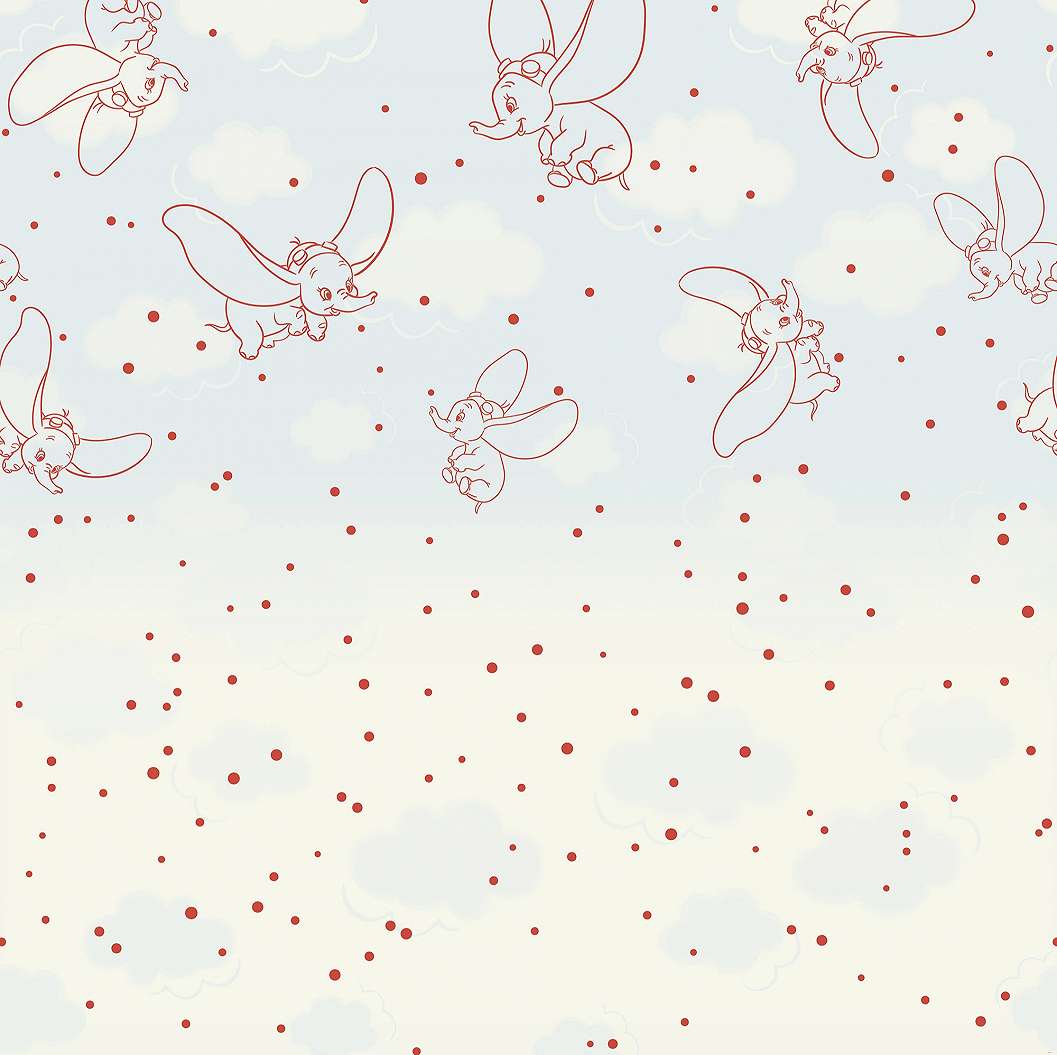 Gyerek fotótapéta kék égbolt felhőkkel és Dumbó kontúr rajzzal